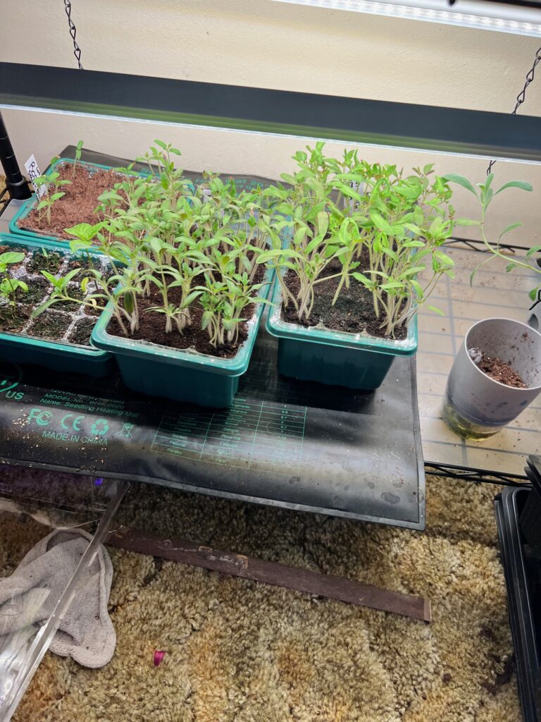 So, I work around flares and what-not. I have sooo many seedlings that have grown into full-blown plants now! I’ve been moving these babies into bigger pots as needed, but keeping up with that has become a full-time job!