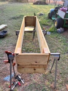 He finished cutting all of the railing boards and spindles on Friday, and the plan for Saturday was to get those put together and installed…but we looked at the Calendar and realized we were running out of time for the coop build.