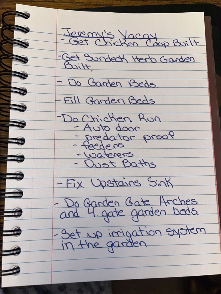 It’s Jeremy’s Vacation time here on the farm…but unfortunately for him, that only means he has three weeks in which he will not be going to his other job. There is plenty of farm work to do around here, not to mention all of those additional projects I’ve lined up for him.