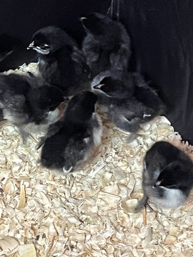 That’s right! The Boujee chicks had arrived! He brought them home, and there were NOT eight hens…there were nine, but one was tiny and dying. I held her until she had passed, and I had Jeremy bury her.