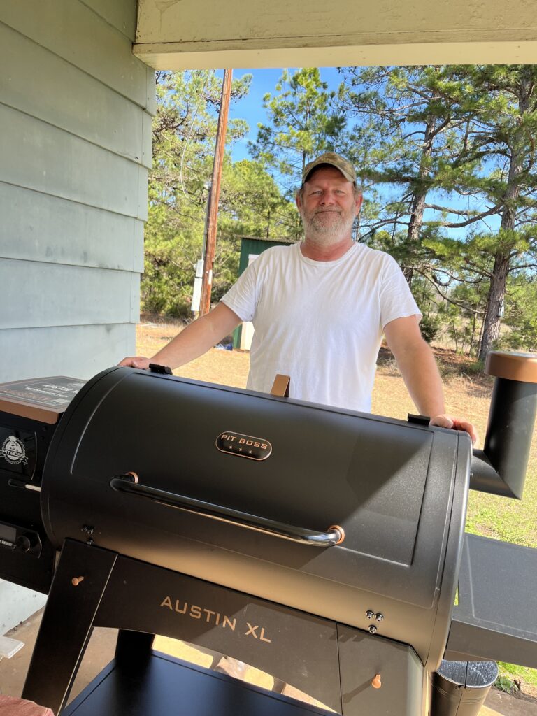 Yesterday, Jeremy received his Father’s Day gift (very early). It’s a Pit Boss wood-pellet Grill and Smoker. He loves it. His old grill was about 15 years old and falling apart.