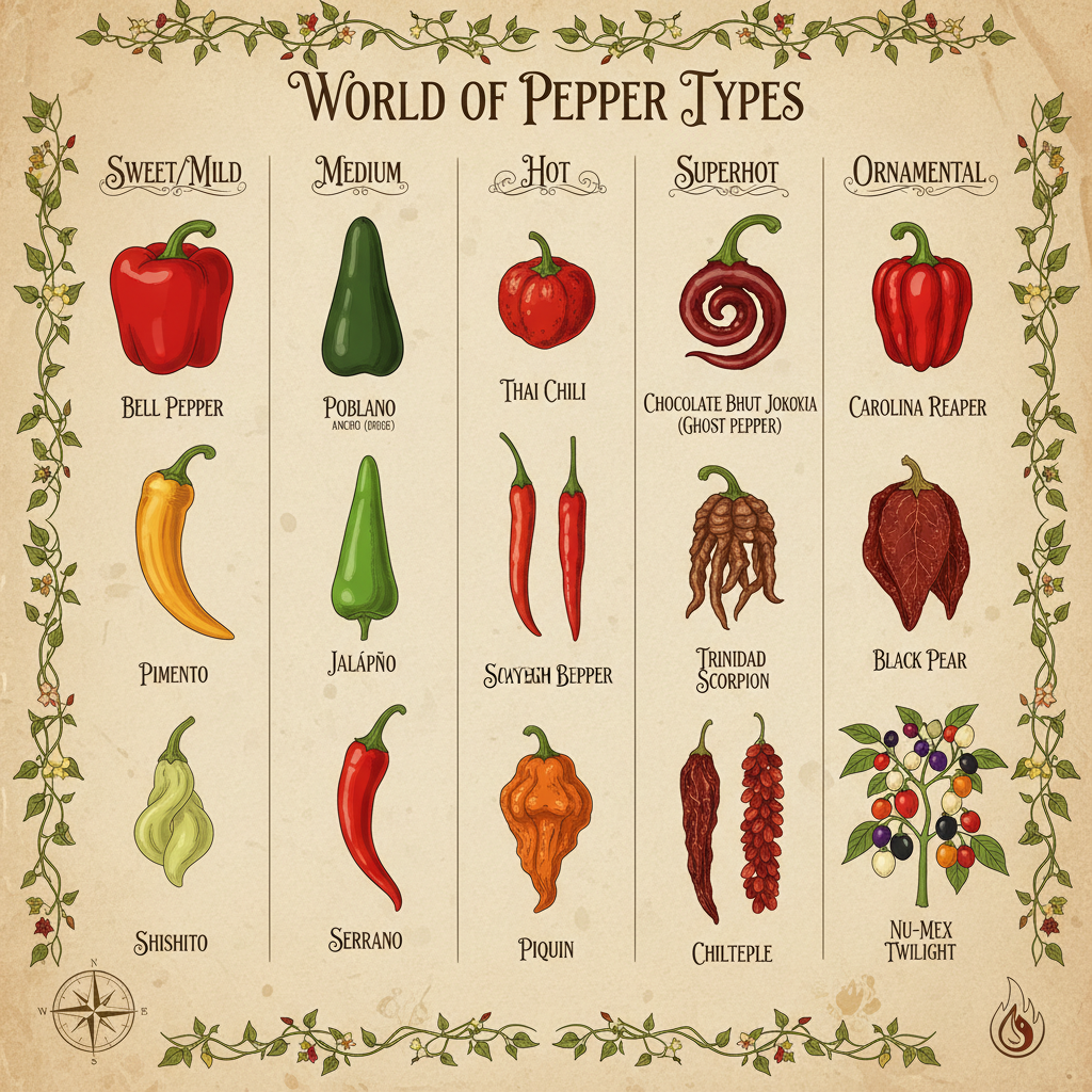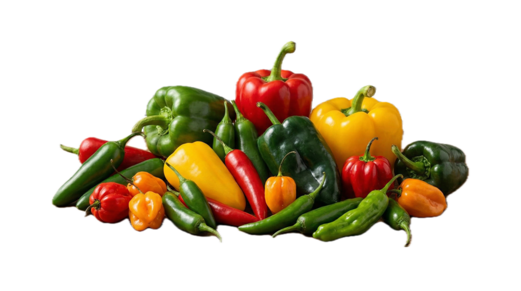 | Our Favorites: | Bell Peppers: California Wonders, Chocolate Bells, Golden Bells, Purple Beauties. Mild: Peperoncini, Mammoth Jalapeños, Hot: Habanero, Thai, Carolina Reaper Sweet: banana, Jimmy Nardello, lunchbox |
